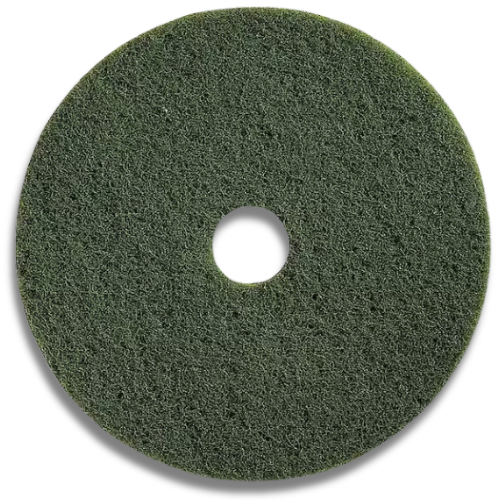 Ideal for scrubbing hard floor surfaces, the Green Scrub Pad excels in aggressively removing dirt and scuff marks from heavily soiled floors. Additionally, it's proficient in light stripping when used with a cleaning solution. Compatible with standard electric floor machines or automatic scrubbers, this pad delivers optimal results at machine speeds up to 350 RPM.